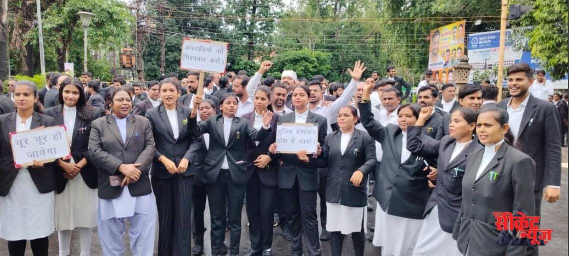 वकीलों पर हमलों के विरोध में मानव श्रृंखला, प्रदर्शन, एसपी से मांगा इस्तीफा