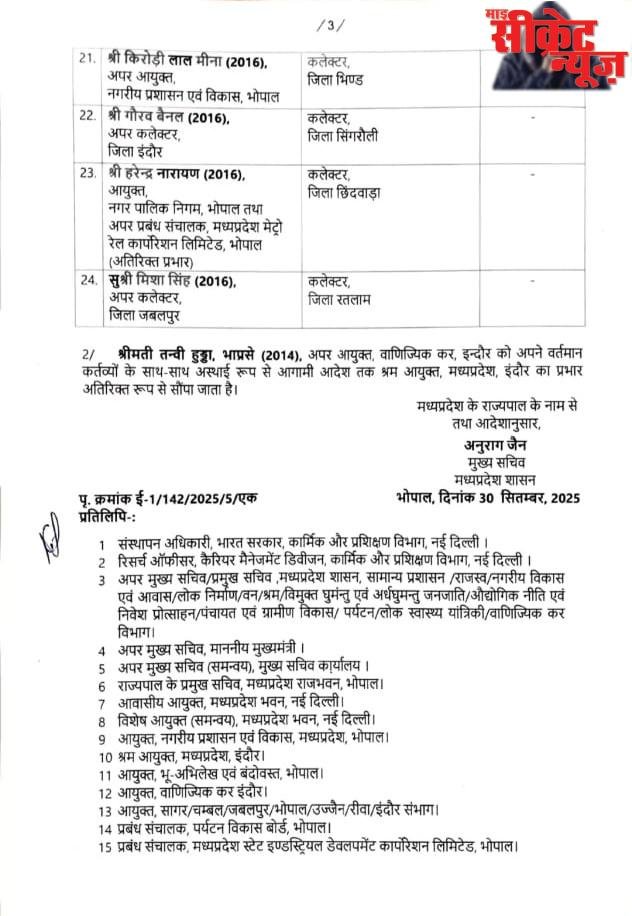 Breaking News: 24 IAS officers transferred in MP, 11 collectors changed